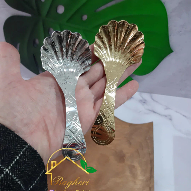 قاشق صدفی دسته کوتاه مناسب سرو آجیل جنس از استیل و رنگ ثابت