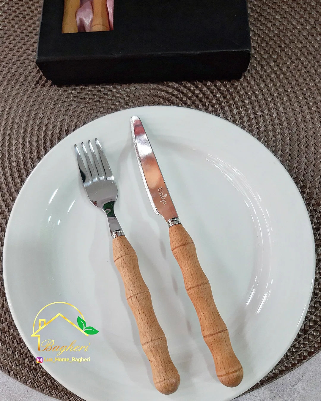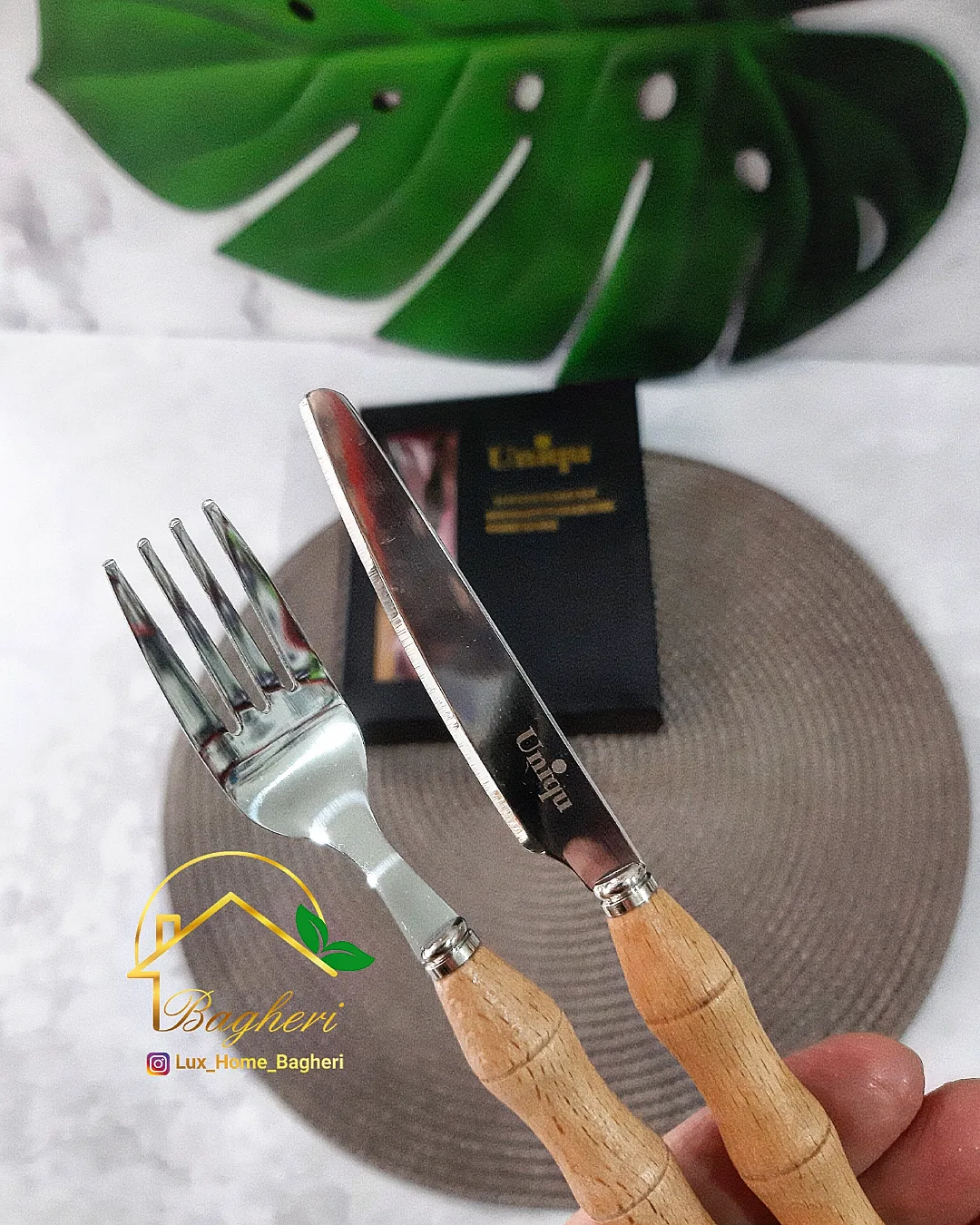 کارد چنگال دسته چوبی یونیک تیز و بسیار شیک و عالی دسته ها از چوب هستن ۶عدد کارد ۶عدد چنگال