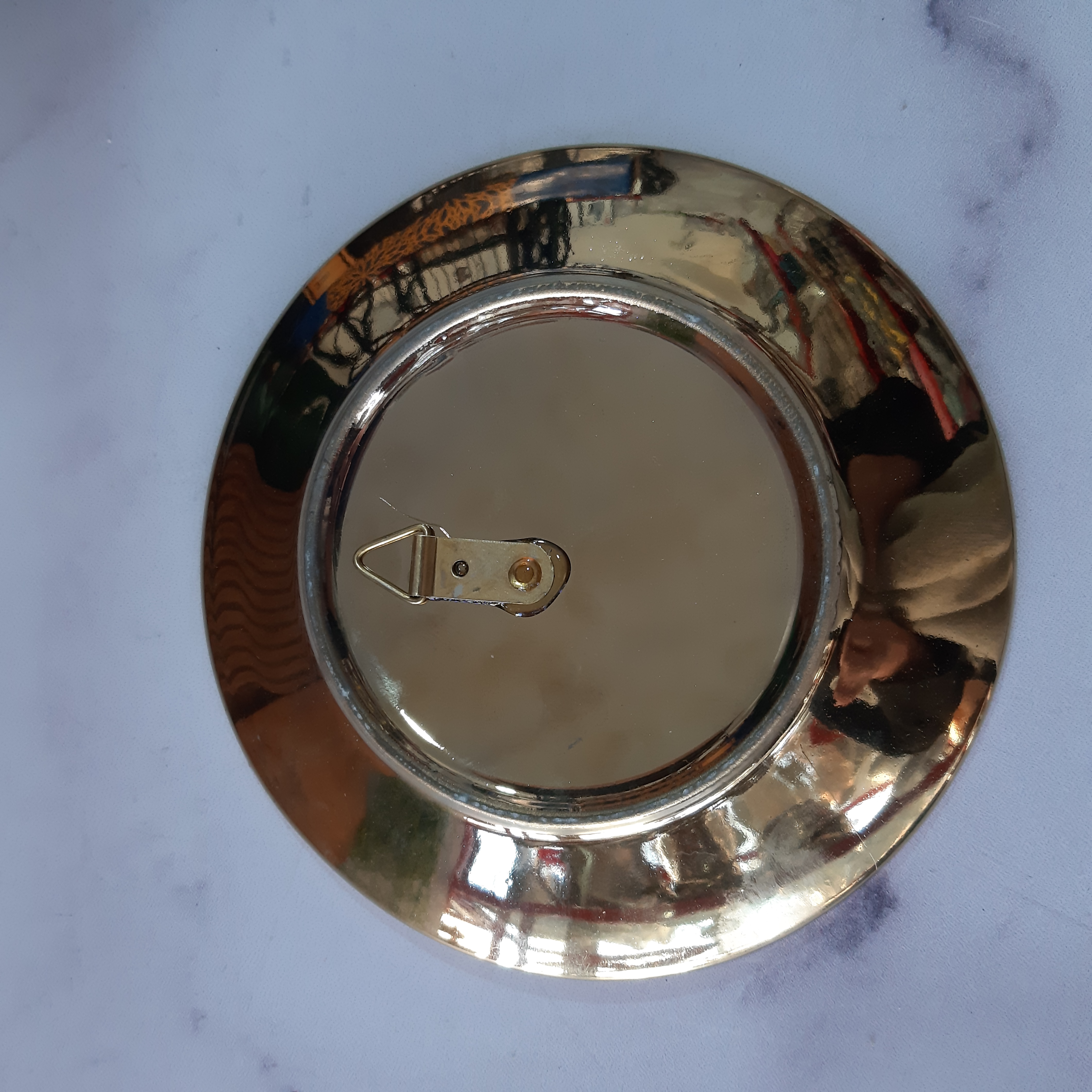 بشقاب دیوارکوب سرامیکی اسم مبارک الله طلاکوب دارای قلاب برای متصل شده به دیوار با قطر ۱۵سانتی متر دارای جعبه کاغذی و یک عدد پایه پلاستیکی برای استفاده رومیزی