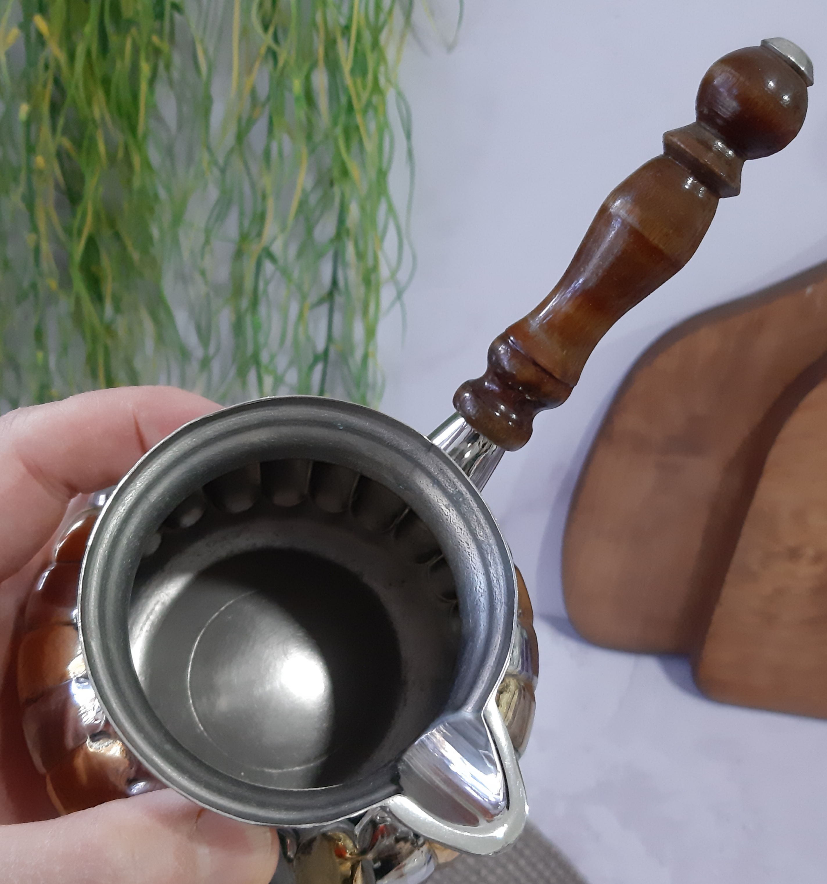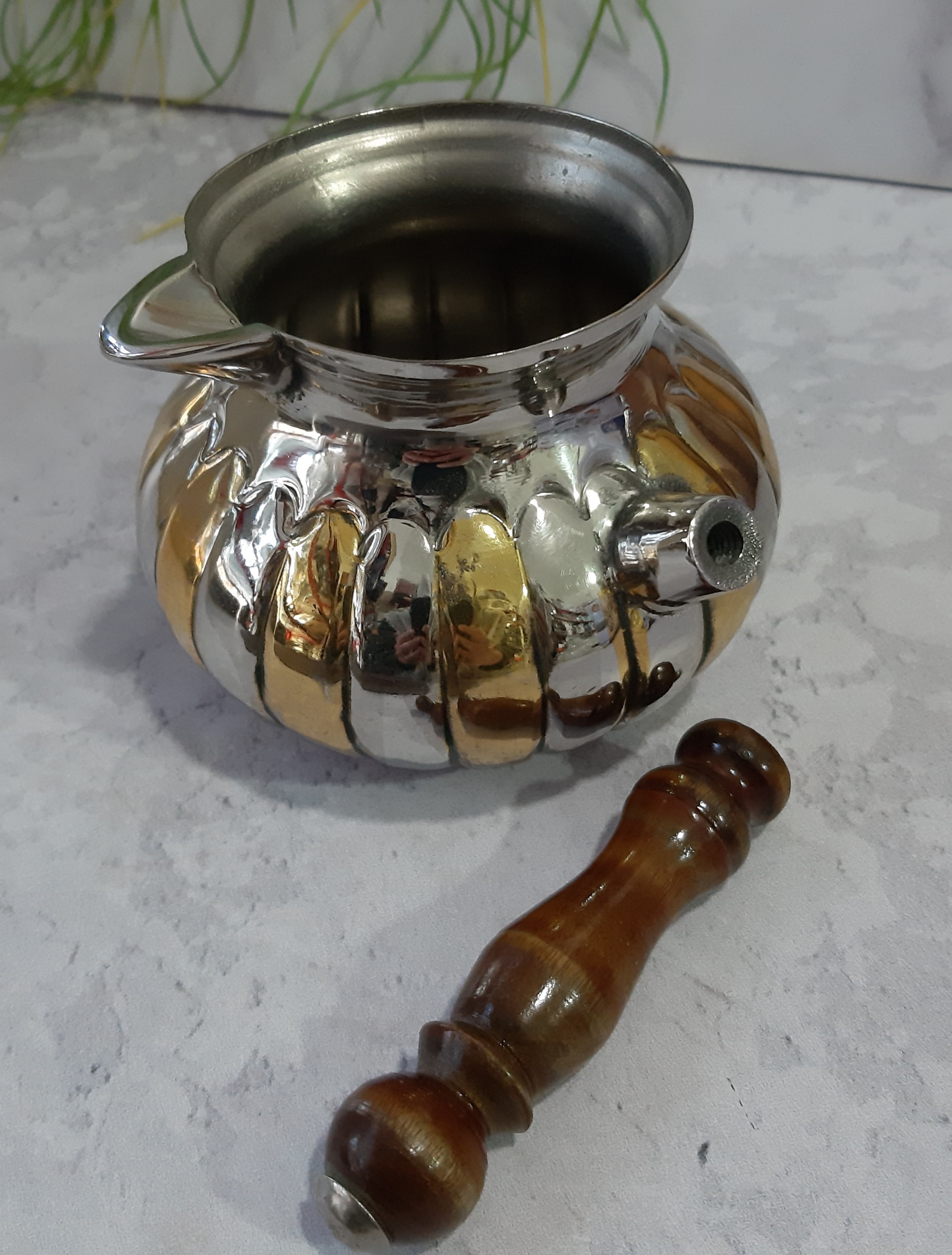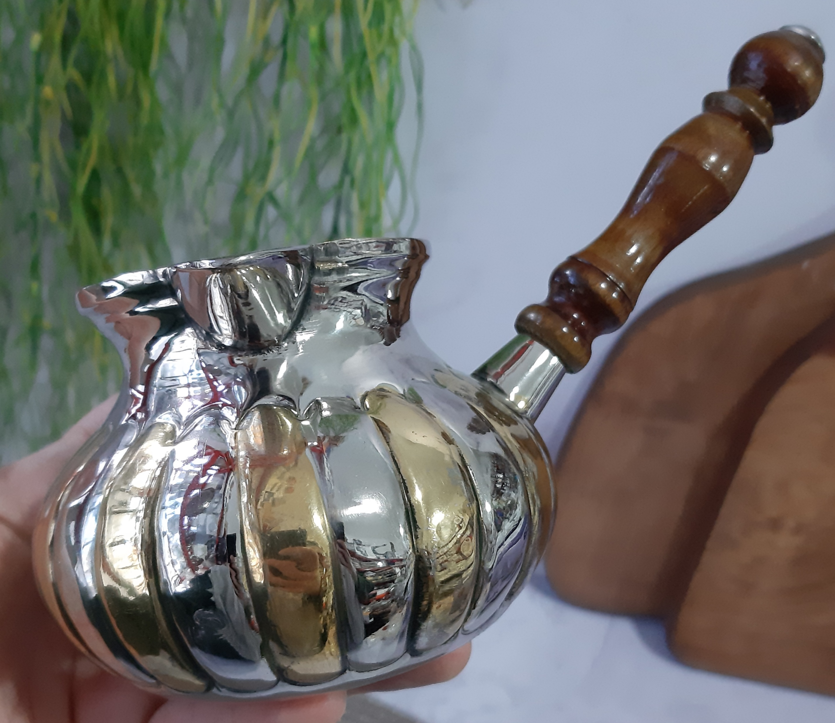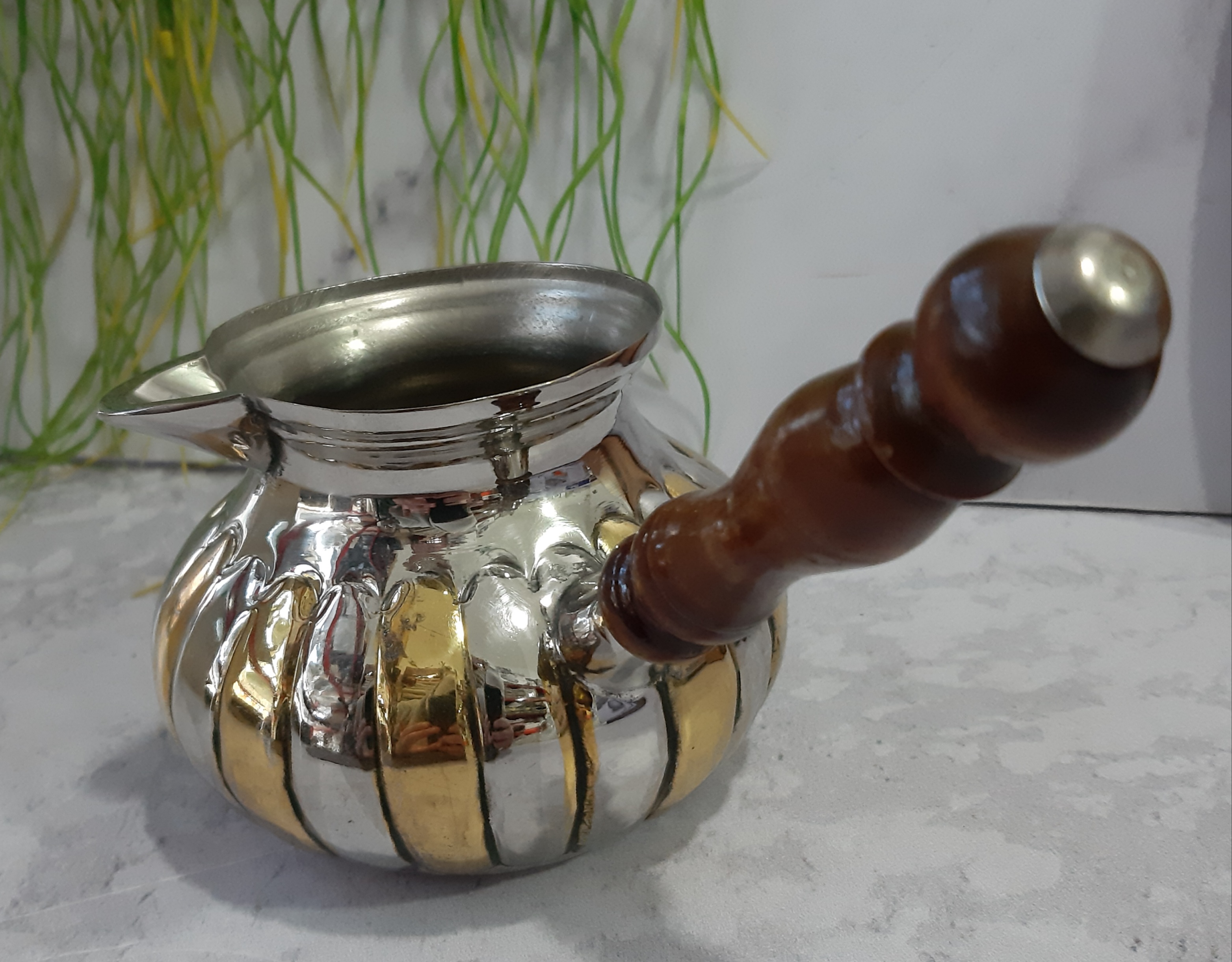 قهوه جوش استیل هندی سیلور طلایی دسته چوبی