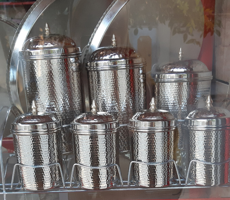ست پاسماوری مسی روکش کروم رنگ ثابت دارای ۳عدد بانکه بزرگ و ۴عدد کوچک به همراه استند. ارزشمند.زیبا .اصیل و ماندگار